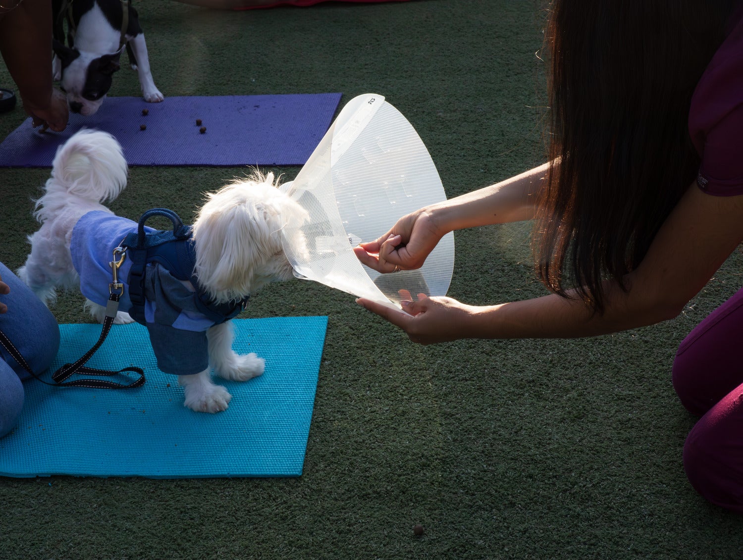 Fast forward to August 18th, Zeus’ final class. The puppy who showed up that day was nearly unrecognizable from the anxious little fluff we first met. He trotted through the tunnel with confidence, sailed through the obstacles, and even put his head into the e-collar without so much as a grumble. That alone is a big win!
